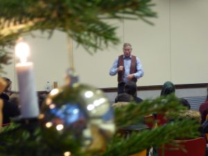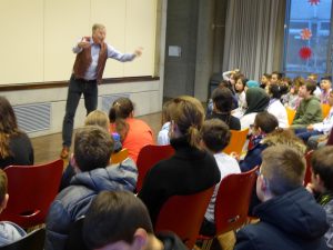 Richard erzählte uns, wie diese Geschichten zu ihm kamen und all dies immer in seiner Muttersprache Englisch. Die Schüler hingen begeistert an seiner Performance, für die er nichts weiter benötigt, als sich selbst und sein Talent Geschichten lebendig werden zu lassen. Er schafft es immer wieder, dass, obwohl man vielleicht vermuten könnte, das hie und da fehlende Vokabular, das Perfomen ohne jegliche Bilder und was ein Jugendlicher heute so gewohnt ist, dass die Kinder begeistert werden. Und das von Stufe 5 bis 10. So we are sure: Let‘s have the procedure every year!